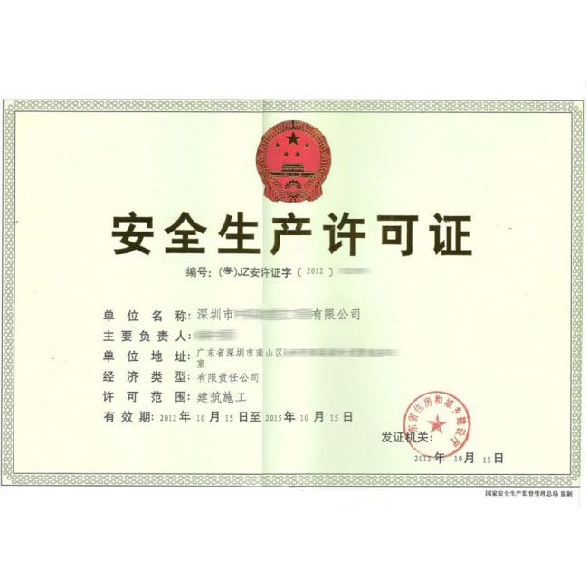 热门关键词搜索:深圳企业安全生产许可证-正本,安全生产许可证,佛山市粤讯企业管理咨询有限公司,建筑企业资质,施工总承包资质,专业承包资质,设计监理造价资质,ISO9001,安防资质,佛山资质代办